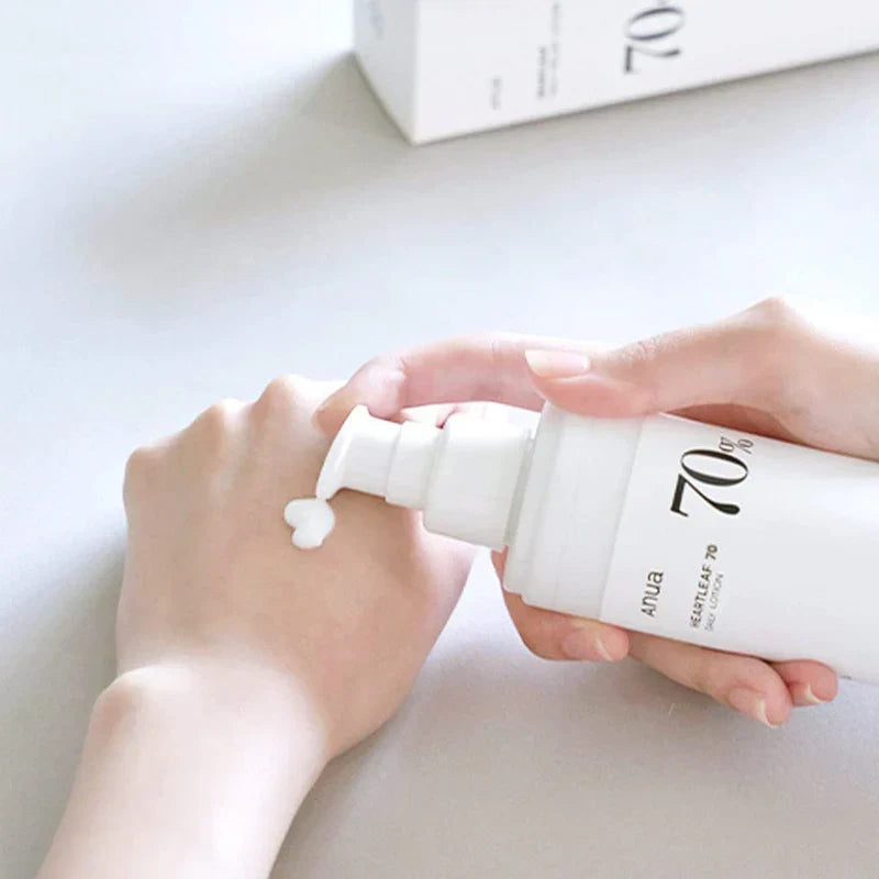 Introducing ANUA Heartleaf 70% Daily Relief Lotion, a soothing daily solution with 70% heartleaf extract to calm and hydrate sensitive skin. This lightweight lotion relieves irritation and leaves your complexion feeling refreshed and nourished. Perfect for those seeking gentle, everyday care.